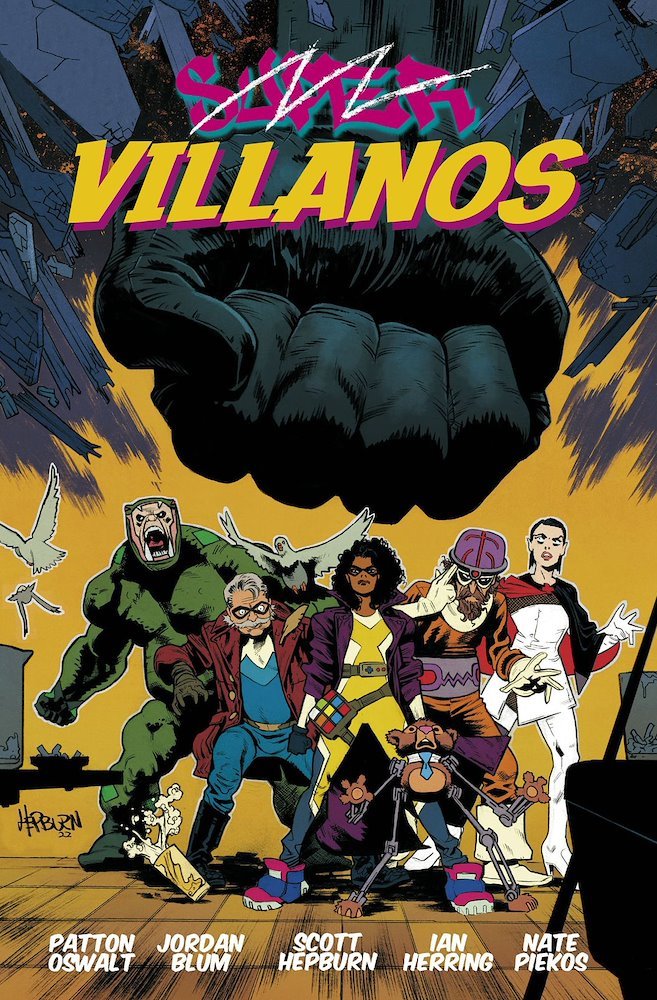 De los directores de la serie de Marvel M.O.D.O.K, llega el cómic SUPERVILLANOS, publicado en Estados Unidos por la prestigiosa editorial Darkhorse. Una obra con guión de Patton Oswalt y Jordan Blum y dibujada por el artista Scott Hepburn en la que los autores crean un drama gráfico sobre superhéroes y villanos que nos traslada al último suspiro de los coloridos e inocentes días de la Edad de Plata y Bronce antes de ser arrastrados a la era moderna. La vida es dura para un supervillano. No nos referimos a los grandes genios que maquinan para conquistar el mundo, los artífices del caos o los archienemigos No. Hablamos de los pequeños criminales profesionales. Los que se ponen un disfraz para asaltar una joyería y acaban atados a un poste telefónico para que les detenga la policía, mientras el héroe se enfrenta a su némesis. Son tiempos difíciles para los ladrones disfrazados y están a punto de empeorar. El psicópata conocido como Monigote ha hecho lo impensable. Ha asesinado de una manera horrible a Niño Noche, el joven ayudante de IMSOMNIO, el mayor héroe de Ciudad Crepúsculo. El resto de superhéroes han convertido la ciudad en un estado policial al lanzarse a una carrera desesperada para capturar a Monigote, e impedir que INSOMNIO cruce la línea de la que ningún superhéroe ha regresado jamás. Los curritos del crimen enmascarado se encuentran atrapados en medio. Villanos de poca monta que ya no pueden trabajar o les crujan las costillas.
